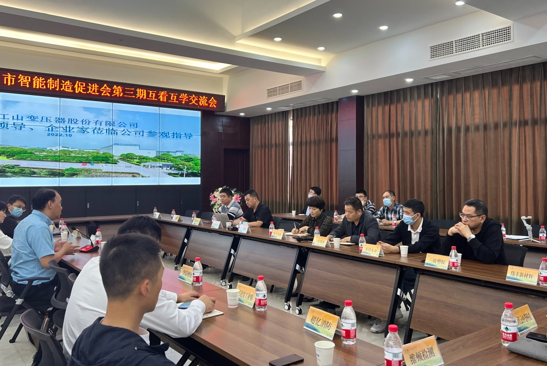 10月22日下午3點,江山市智造促進會“浙江江變•數(shù)字化轉(zhuǎn)型歷程”主題分享會,在浙江江山變壓器股份有限公司順利召開。公司總經(jīng)理在會議上對江變智能工廠建設(shè)等內(nèi)容做主要分享,江山市智造促進會秘書長、科潤智控、浙江研一、倫寶管業(yè)、三棱塑膠、實達實、開洋木業(yè)、金凱門業(yè)等近二十家會員企業(yè)代表出席會議,會議特邀江山市經(jīng)濟和信息化局、江山經(jīng)濟開發(fā)區(qū)領(lǐng)導(dǎo)。