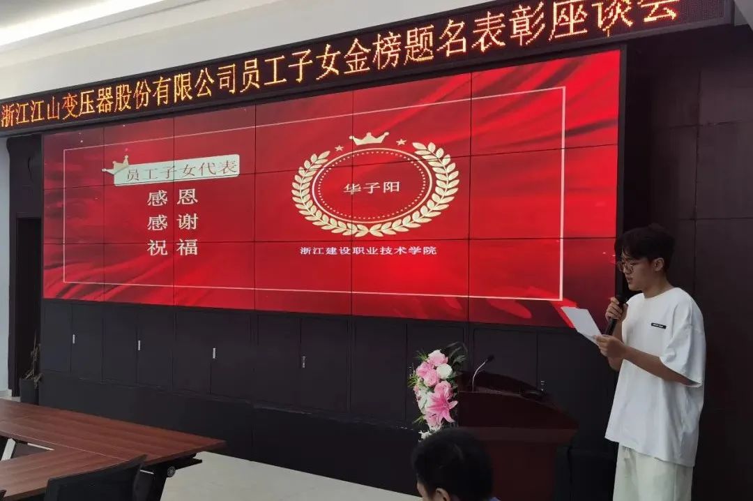 莘莘學(xué)子傳喜訊,碩果累累迎金秋。為進一步提升員工關(guān)心關(guān)愛力度,營造良好的人文氛圍。近日,浙江江山變壓器股份有限公司隆重舉行了2022年度員工子女金榜題名座談會,公司領(lǐng)導(dǎo)及員工子女、家長一同出席會議。